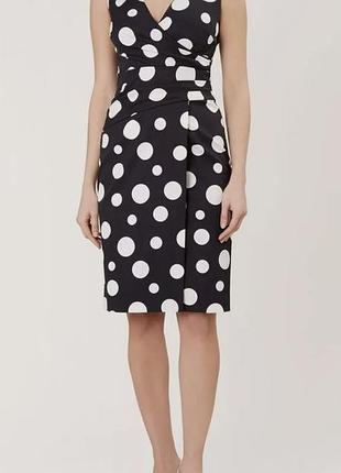 Сукня-футляр HOBBS London Elsa Polka Dot Faux Wrap Black & Ivory ідеально підходить для офісу або наступного заходу! Ця чорна сукня без рукавів прикрашена візерунком у горошок і має привабливе складання/плісування на талії. Застібка-блискавка збоку. пог 45 пот 38 поб 50 довжина 100
