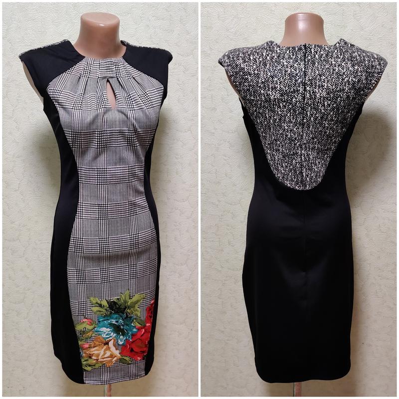 Хорошо тянется, не требует глажки На спине молния На бирке указан размер 38 Замеры: длина 92, талия 34, под руками 42, бедра 43