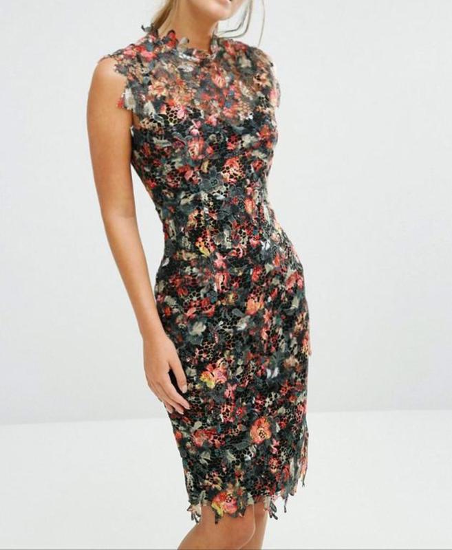 размер UK14 продавалось на сайте ASOS по 98 Полупрозрачный материал хрустящий с принтом Контрастная подкладка Высокий воротник Застежка-молния Шлица Облегающий крой Длина 102 см
