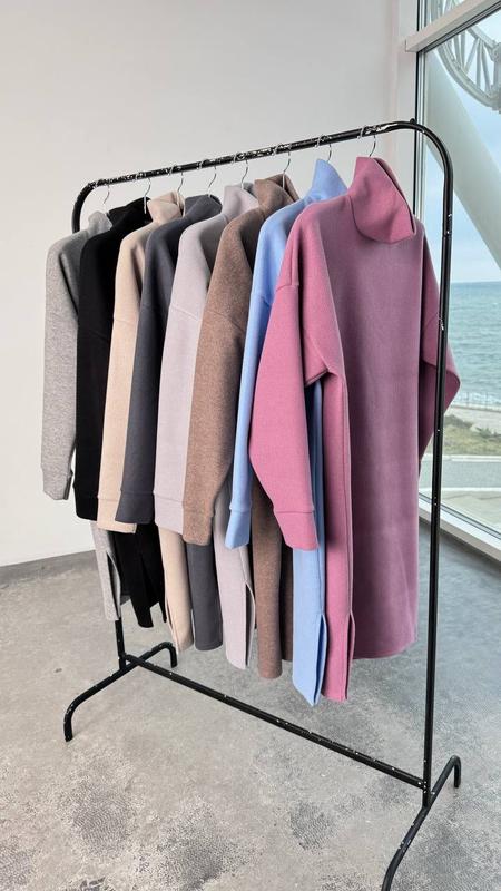 Сукня Мод. 0389 Ткань: ангора вязка (плотная) (тянется) Размер: 42-44, 46-48, 50-52 Цвет: черный, голубой, фрез, мокко, графит, светло-серый, бежевый, серый меланж Цена: 1150грн Платье свободного кроя, рукав приспущен, по бокам разрезы, ворот подворачивается. Ткань очень теплая и мягкая прикосновении к телу, не кашлатится ❗️