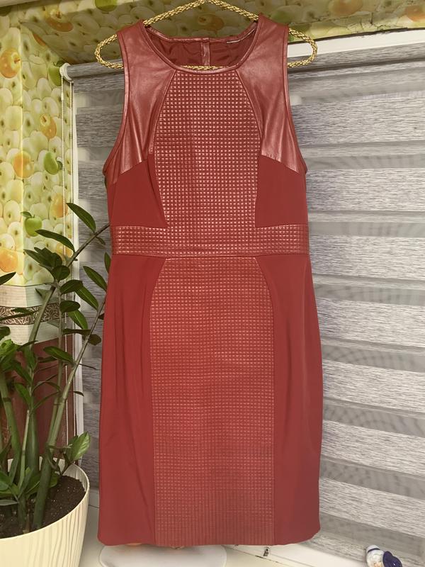 Люксовое платье из натуральной мягчайшей кожи Max Mara Sportmsx с фирменным кристаллом Сваровски. Вещь вне времени Сидит безупречно Красный спокойный и приглушенный Состояние новой вещи и ВНИМАНИЕ: данную вещь на примерку и безопасной оплатою не отправляю. Дам все замеры. Кожа лайка очень мягкая. Боюсь неаккуратной примерки. Длина по спине 95 ПОГ 46 +выточки ПОТ 38,5 ПОБ 50 Ткань немного тянется