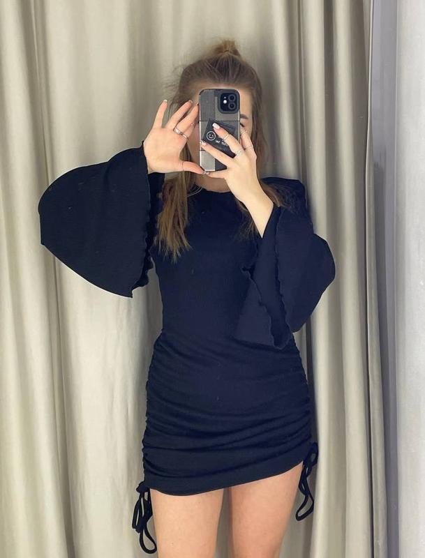 НОВИНКА🇺🇦 🔸Сукня лапша ▪️Модель: 1601 ▪️Ткань: рубчик Турция ▪️Размер: 42-46 (onesize) ▪️Цвет: черный, бежевый, графитовый 💬Стильное акцентное платье с затяжками по бокам🔝 Рукава клеш🥰 есть подплечники👍🏻 Длину платья можно регулировать от мини до меди длиной 110 см❗️ ПАРАМЕТРИ (добре тягнеться): ОГ 88-99 см ОТ 64-75 см ОС 90-103 см Длина: 75-110 см❗️