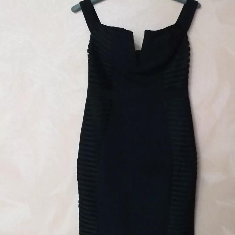 Новое, не носилось, очень красивое черное платье по фигуре с красивыми деталями в виде глубокого декольте и комбинированной ткани с сеточкой. Плечи приспущенные и садятся в виде лодочки на руки, в декольте встроенный жесткий каркас в виде палочки, край обработанные селеконовой лентой для удержания на теле, в бюсте вставать. Застежка в виде длинной молнии сзади, ткань эластичная, немного тянется. Размер указанных 14, ориентируйтесь по замерам в спокойном состоянии. Замеры: длина 78 см, по груди 84 см, талия 76 см, бедра 96 см, низ 90 см. Есть еще много интересной женской и мужской одежды и обуви, смотрите все Мои объявления и подписи на страницу.