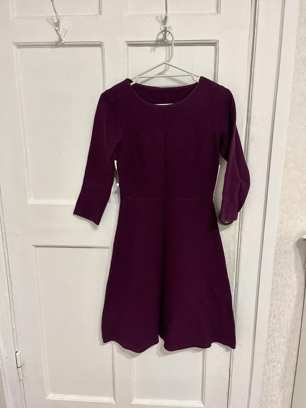 Продаю сукню в ідеальному стані. Одягла два рази. Шикарний сливовий колір. Сідає по фігурі. Приталена. З виточками гарними. Рукав 3/4. Від талії злегка розходиться, юбка не сонечком - трапеція.
