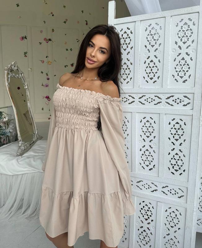Мод 144 Розмір:42-44,46-48,50-52 Тканина:софт Сукня ,яка буде вам надавати впевненість в собі і в якою ви будете стильно виглядати .Довжина до коліна .На грудях резинка .Можна одягати зі спущеними та з піднятими плечиками .Супер якість ,по супер ціні. Ціна:730 грн