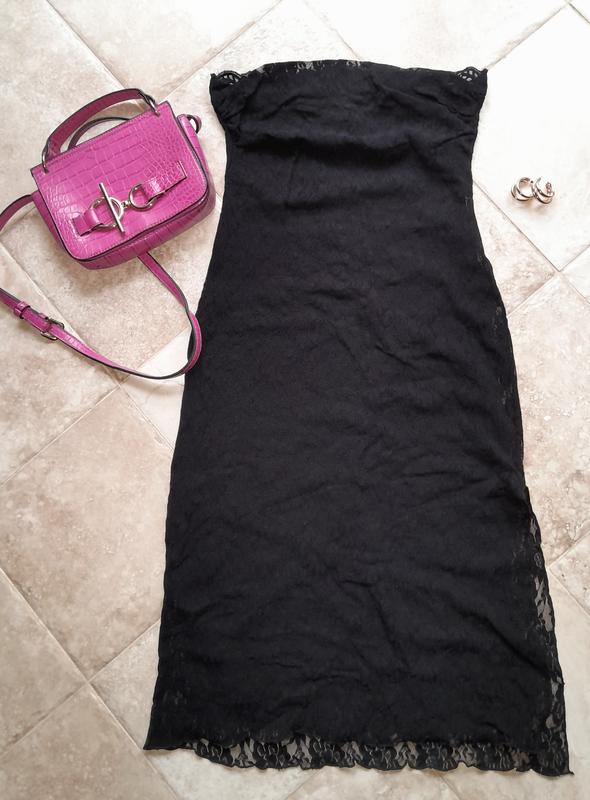 Платье на размер S-M, хотя на бирке МL. С подкладкой и небольшим разрезом сбоку. Без бретелей. Размеры скина в личные