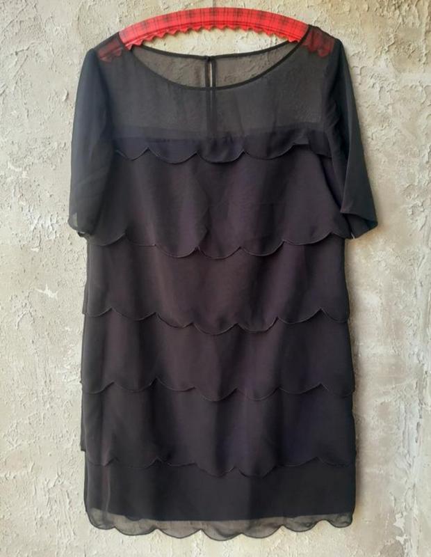 Сукня 46-48 р на подкладке фатиновый верх и рукава, фатиновые накладки, как рыбная чешуя насыщенный черный цвет, некоторые с фото не передают цвет ширина плеча 42 см длина рукава 29 см выход в рукаве 14,5 см ширина груди 52 см длина по спине 87 см ширина бедра 54 см ширина в талии 51 см сбоку молния длиной 39 см