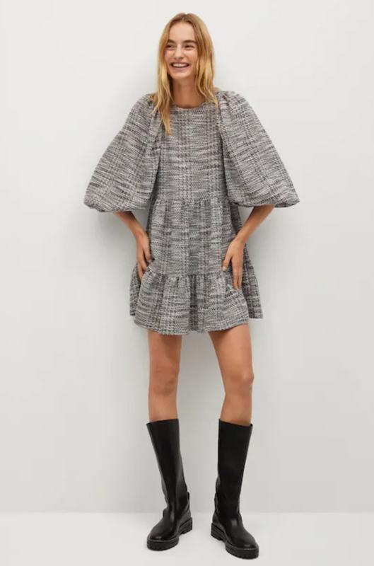 Расклешенное к низу платье с воланами и рукавами-буфами. Рассчитано на холодный сезон. Комплиментарно любой фигуре. Указан размер L ПОГ 47см Бёдра саободно Длина 86см Рукав 47см внизу резинка Состав: 77% полиестер 20% хлопок 3% эластан Из личного гардероба