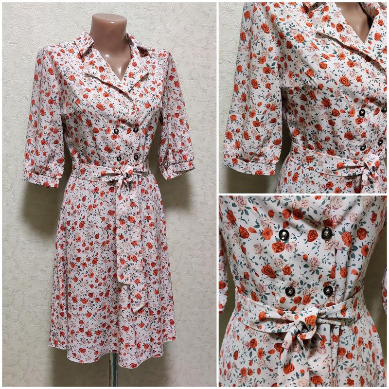 Молния на спине, пуговицы для красоты, есть пояс Бирок с информацией нет, ориентировочно размер S Замеры: длина 93, под руками 44, талия 38, бедра 66