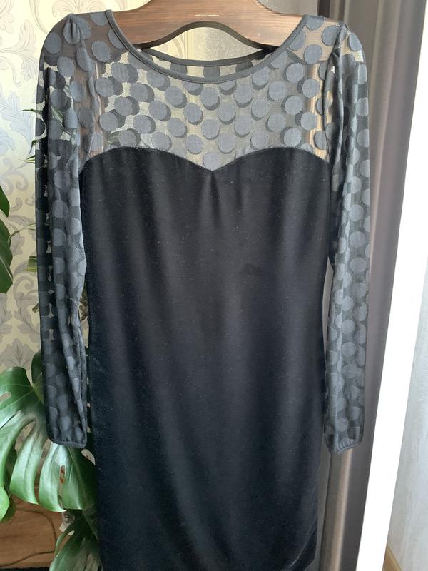 Изысканная, вечерняя, по мере сексуальный и одновременно простой и можно сказать базовая вещь в гардеробе. Верх и рукава выполнены из сетки, а основание из бархата. Ткань угольно- черного цвета с красивым переливом, эластичная и красиво тянется. Вещь новая, сохраненная бумажная этикетка. Замеры: ширина в груди 96, в талии 84, в бедрах 94, рукав 70, длина 97.