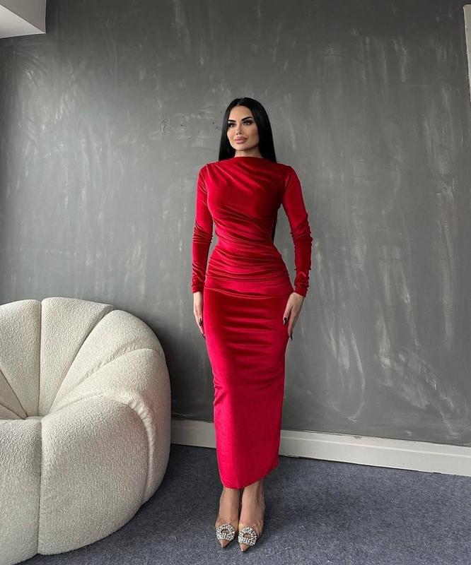 Новинка 🥰 Сукня Мод.av 457 Цвета: черный, зумруд, синий, красный Размеры: 42-44, 46-48 Тканина: оксамит Цена: 1100 грн Платье миди, не оставит тебя без внимания😍 Идеально подчеркивает фигуру🖤