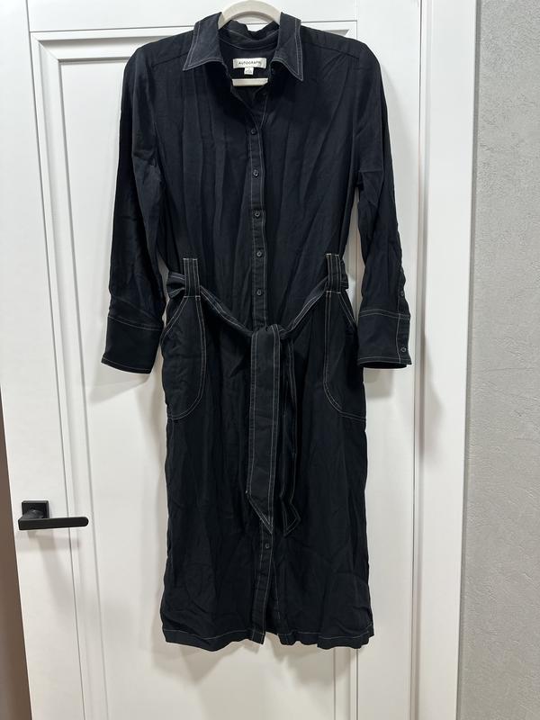 Сукня довжини міді чорна з контрастною ниткою, йде під пояс, застібається поіністю на ґудзики, натуральна тканина, розмір 10(s-m), дуже гарно виглядає, стан ідеальний