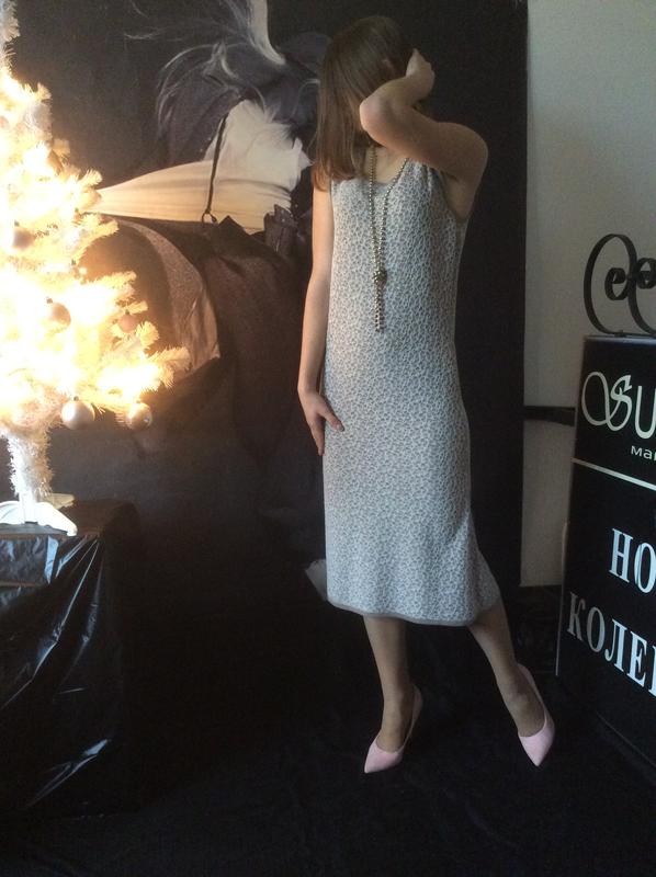 Платье плотный вязанный трикотаж, основа кофейного цвета и по верху узор паутинкой светло-кофейного цвета. Б/у в очень хорошем состоянии. Размер М.
