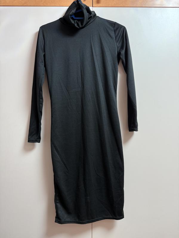 Чорна сукня ХС з довгим горлом З довгими рукавами, нижче коліна В гарному стані Щільна тканина Зріст дівчини: 165 см