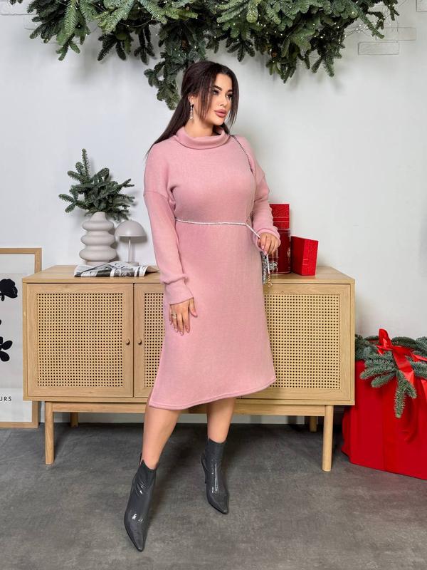 Модель: 9.12бат ▪Размеры: 52-54, 56-58, 60-62, 64-66 ▪Тканина: трикотаж Ангора ▪️Цвета: розовый, мята, серый и синий Стильное платье прямого кроя. Ткань трикотаж ангора, которая смотрится мягкой, уютной и теплой. Прямой свободный силуэт с длиной ниже колена. Высокий воротник добавляет элегантности и защищает от холода. По бокам есть глубокие разрезы, которые делают образ женственным и динамичным. Длинные ручки, слегка свободные, что добавляет комфорта. Оно отлично подойдет для повседневной носки или неформальных мероприятий в прохладное время года.🥰