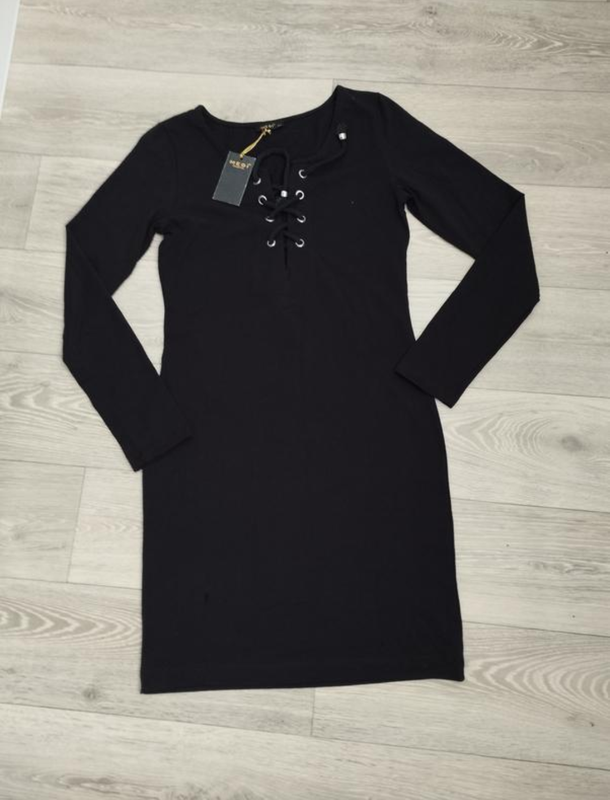 Черное платье по фигуре с длинным рукавом коттоновое платье миди