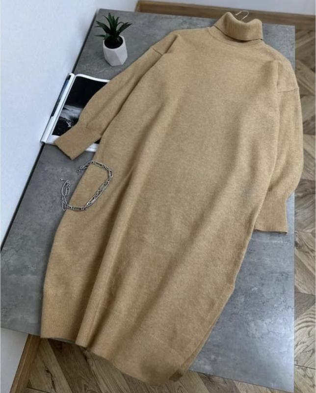 Платье теплое цвет кэмел , мягкое, приятное к телу. Состояние нового. Сток 800 грн Довжина 108 см Пог 58 см Пот 56 см Пос 57 см Довжина рукава від шиї 71 см
