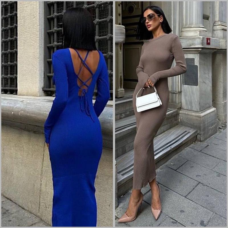 Красивое платье в рубчик с открытой спиной длинная меди вязаное/платье длинное вязаное/беж...