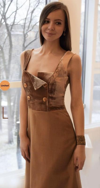 Неймовірно гарний сарафан українського бренду з преміальної, приємної на дотик тканини (70% шерсть, 30 % натуральний шовк), оксамит на бавовняній основі, на ліфі дерев’яні гудзики. Сарафан новий, жодного разу не вдягнений-нажаль зрозуміла що це не мій колір((( Розмір ХС, довжина міді. Чудово підійде для офісного дрес-коду, можна вдягти під гольф, лонгслів, блузу У Києві можливо приміряти