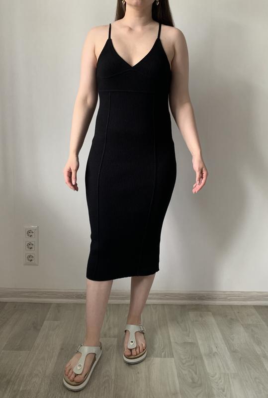 Трикотажное платье черного цвета в рубчик от ZARA Размер М Красиво тянется Длина с лямками 114 см Стан - идеальный