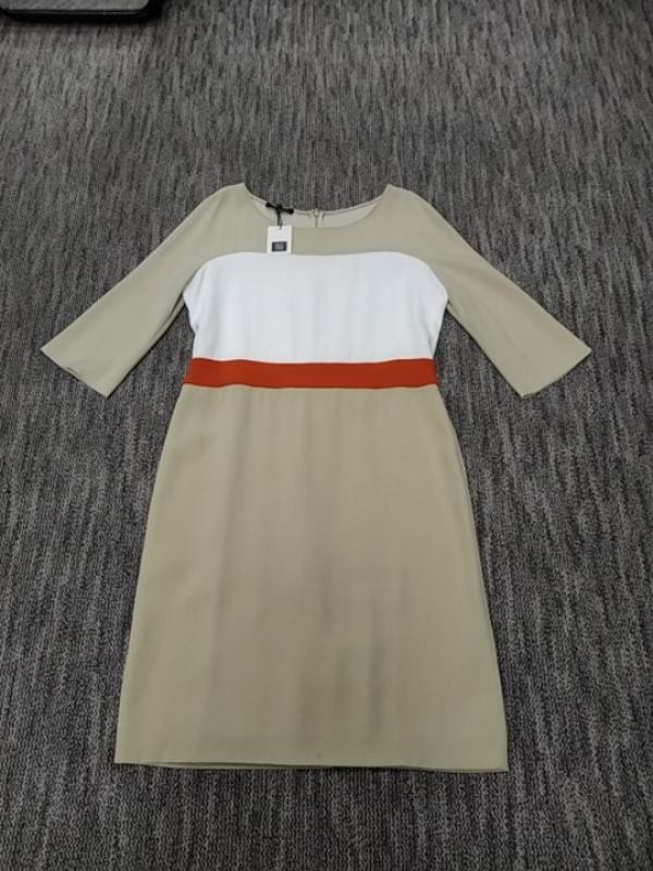 платье приталенного силуэта, на подкладке, на спине застежка молния, разрез, рукав цельнокоричневый,в наличии в трех размерах, в описании размер 44, длина рукава от горловины -50 см, грудь -49 см, талия -42 см, бедра -52см, длина -104 см