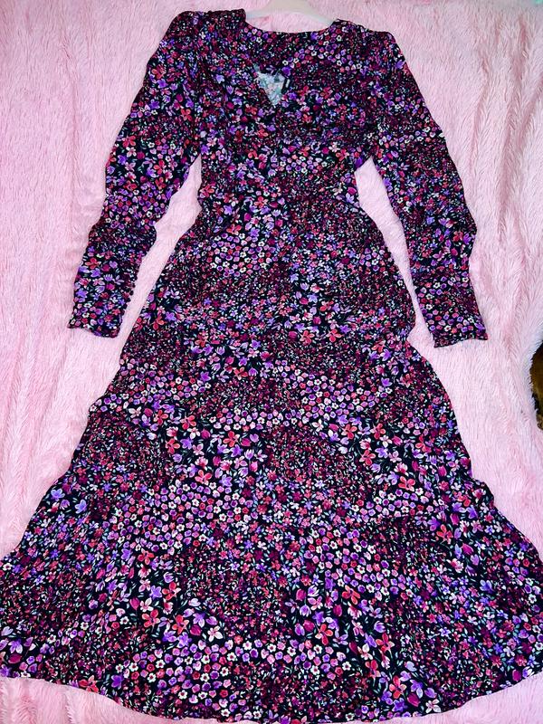 Платье, платье миди, длинное, в цветы, цветочный принт, объемные рукава, вискоза tef