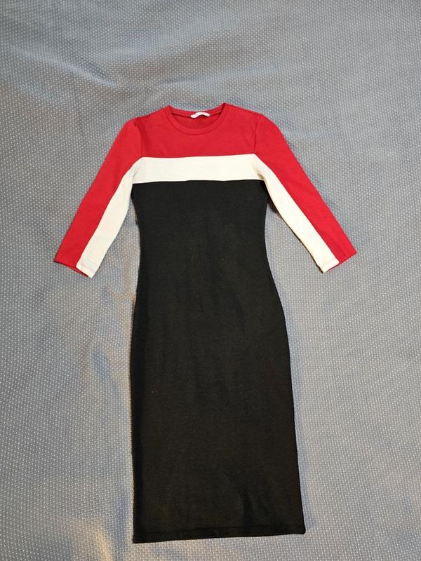 Сукня Zara: Розмір - S ( Усі розміри в см приблизні) Довжина - 106 Обхват грудей - 78 Бедра - 80 Тканина - трикотаж, поліестер. Сукня в хорошому стані. Тканина тягнеться. Рукав 3/