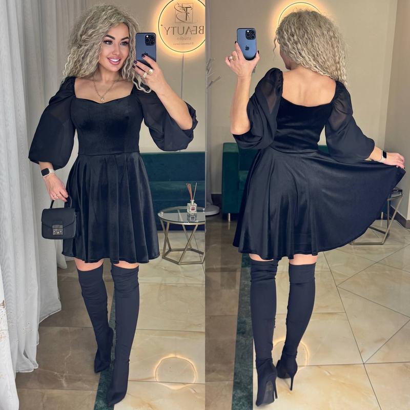 Модель 795 Женское платье Размерный ряд S,M,L,XL Тканина оксамит , рукава шифон Рукава на гибкой резинке, можно аккуратно регулировать по плечам Супер качество