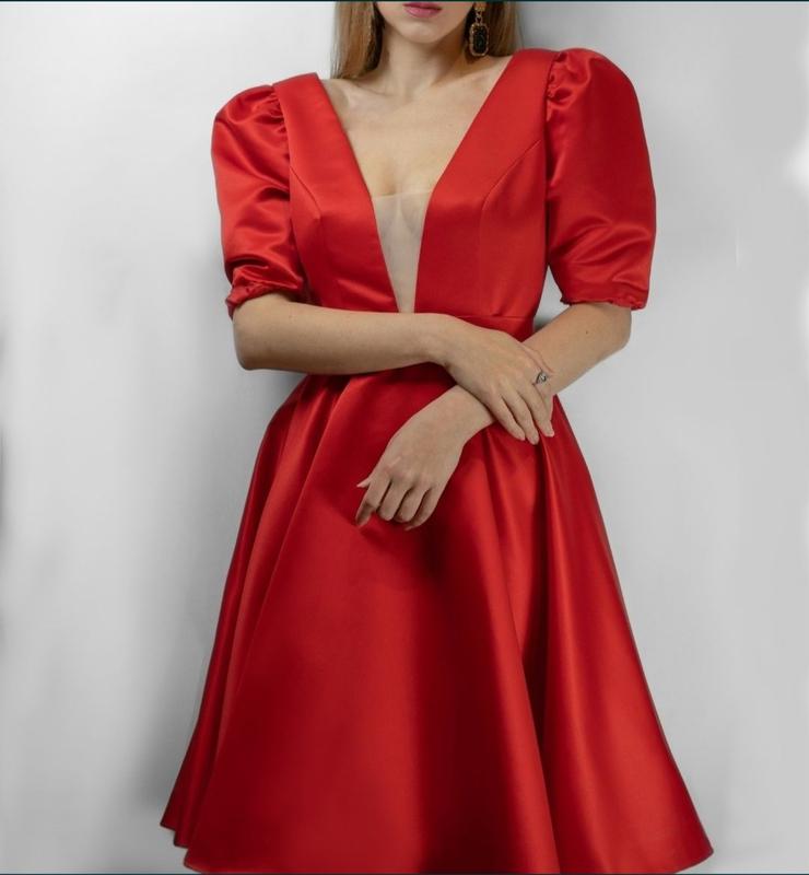 Платье атласное красная миди с прозрачной вставкой