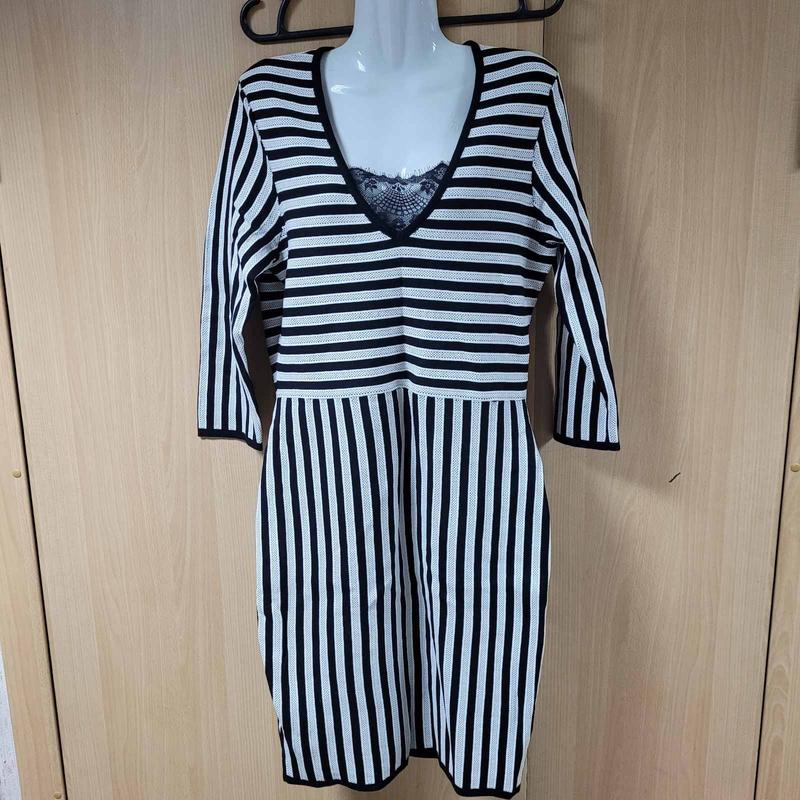 Тёплое платье из очень плотной ткани стрейч. Новое, без бумажной этикетки, люкс сток.Цвет чёрный,белый. Ог 96+, талия 82+, Об 96+, рукав 49, длина 99.