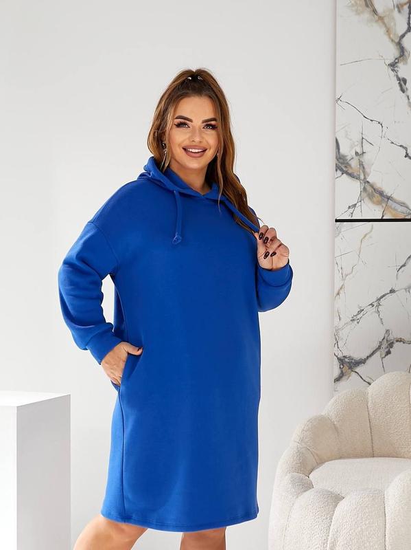 Сукня Цвет : электрик, темносиний !! размер 46/48,50/52,54/56 ткань: трикотаж на флисе + капюшон + боковые кошени замеры выруса: 46/48:ОГ 104 ОБ 102 длина рукава 44 длина виробу 95 50/52:ОГ 108 ОБ 106 дом рукава 44 длина виробу 95 54/56:ОГ 112 ОБ 110 длина рукава 44 длина леля 95