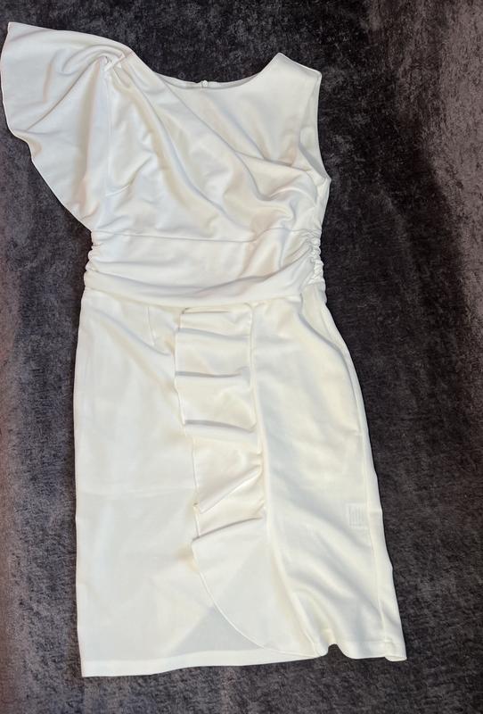 Біля сукня з розоватим відтінком фасону облягаючого з такими літаючими елементами(приблизне фото на тілі я прикріпила ) Розмір вказаний xl .Додатково заміри надам