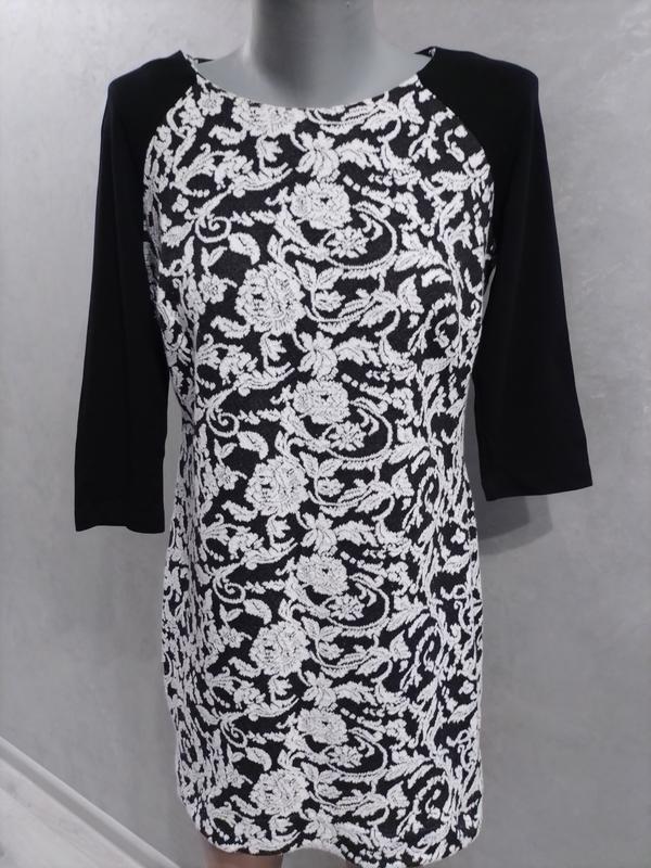 Красивое платье, удобное, комбинированный цвет! рукавчик 3/4, зад удлиненный Жут,размер 10, модель свободная