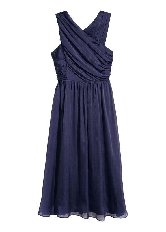 Платье до щиколотки из жатой ткани. Платье имеет узкий асимметричный верх с запахом и драпировкой спереди. Присборенный шов на талии. Расклешенная юбка с мягкой струящейся драпировкой и потайной молнией сзади. Возможно повреждение бирки 0623745_син_06