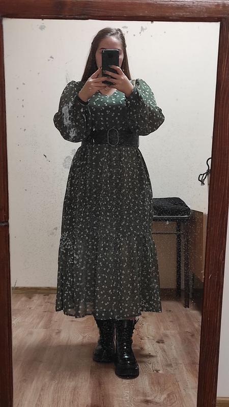 Невероятное платье в цвете хаки с цветочным принтом) P.s. Идет без ремешка Одягалась лише один раз