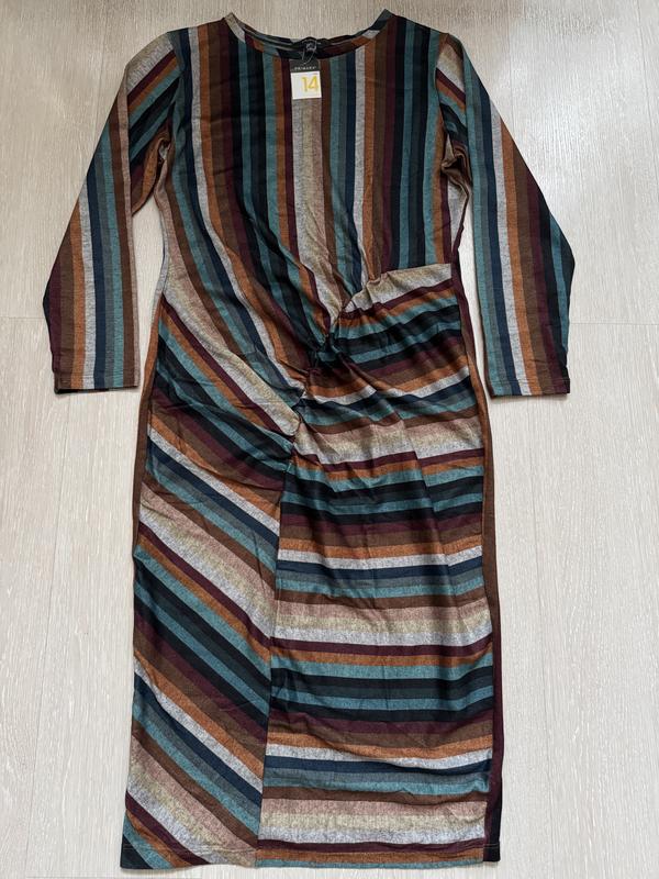 В наличии красивое платье фирмы PRIMARK. Размер указан 14, но по замерам красивей сядет на 12. Состав: 95% полиестер и 5% эластана..ткань мягенькая и приятная к телу, хорошо тянется. ПОГ-51...хорошо тянется до 65, длина платья-113, полуобъём в талии-40, плечи-40, длина рукава-55, полуобъём в бёдрах-53+ещё хорошо тянется.