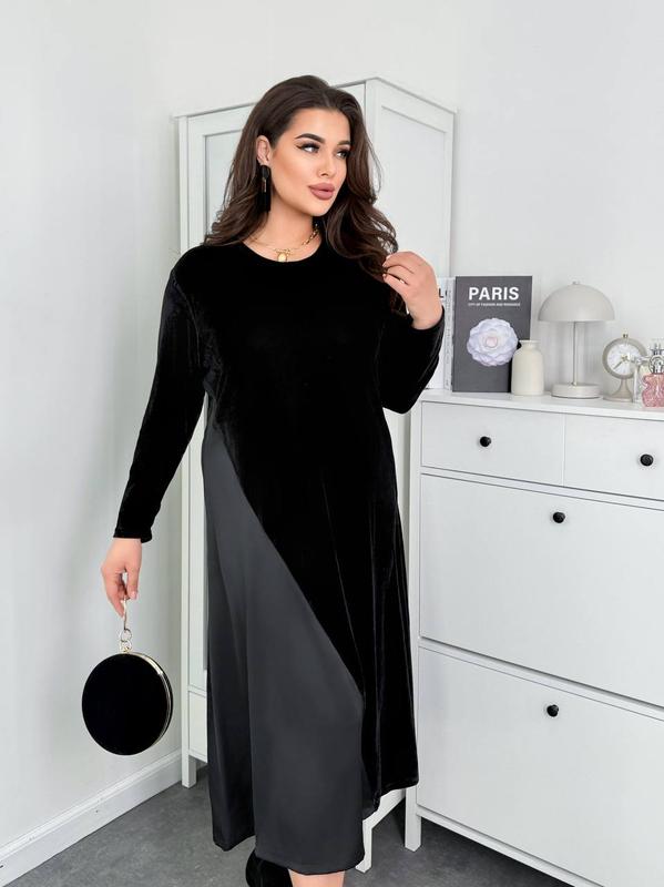 Платье Ткань бархат, двусторонний плотный шелк (не путать с дешевым шелком «Армани») Цвет черный Размер 48-50,52-54,56-58 Невероятно красивое платье из приятного к телу бархата и двустороннего шелка. Отлично скроет любые недостатки фигуры. Длинный рукав. Ткань хорошо тянется.