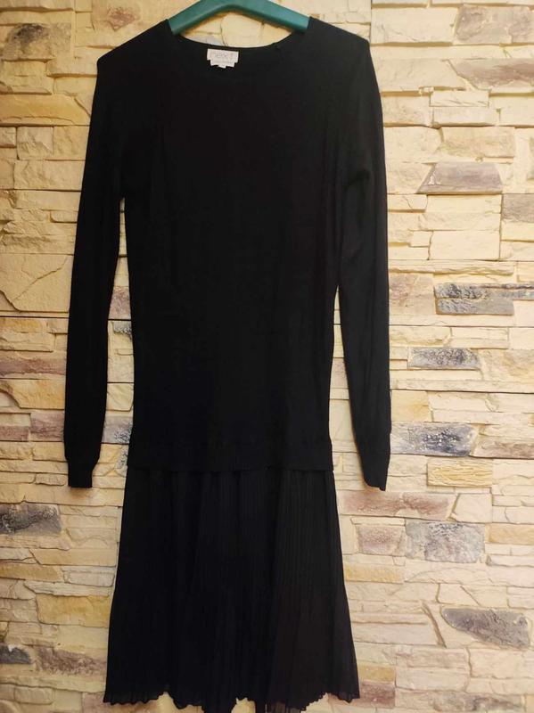 Сукня/плаття Next, два в одному,виглядає як джемпер із шифоновою спідницею-гофре, розмір 48-50,хороший стан,безх дефектів, довжина по спинці 116 см, ПОГ 48 см,ПОТ 40 см.довжина рукава-реглану від вирізу горловини 84 см.