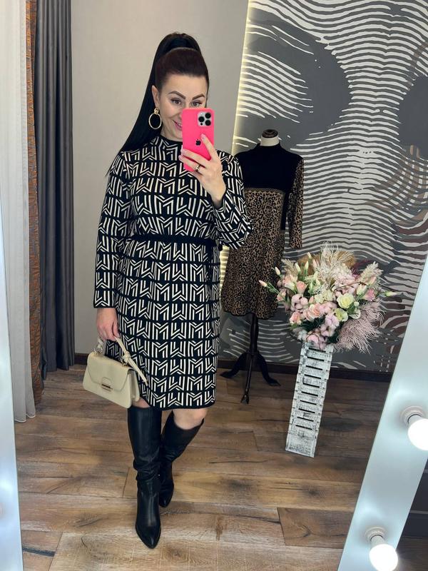 тепле і затишне плаття приталеношо крою з невеликим коміром стійка, довгими рукавами, зручним вшитим паском на талії , зігріє вас в холодну пору року, плаття матиме чудовий вигляд на вас у будь-якій життєвій ситуації, воно виготовлене з приємного до тіла трикотажу машинного в'язання з принтом, що запам'ятовується розмір єдиний 44-46 довжина 94 см, об'єм грудей по виробу 100 см тягнеться до 108 см, довжина рукава від шиї 66 см, об'єм стегон 112 см тягнеться до 118 см , довжина від шиї до талії 36 см код 0642-2