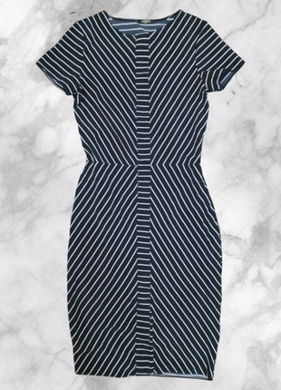 облігаюча сукня, чорна в білу смужку, бренд МІХМІ , РОЗМІР xs-S, спереду знизу має невеличкий розріз, довжина до колін.
