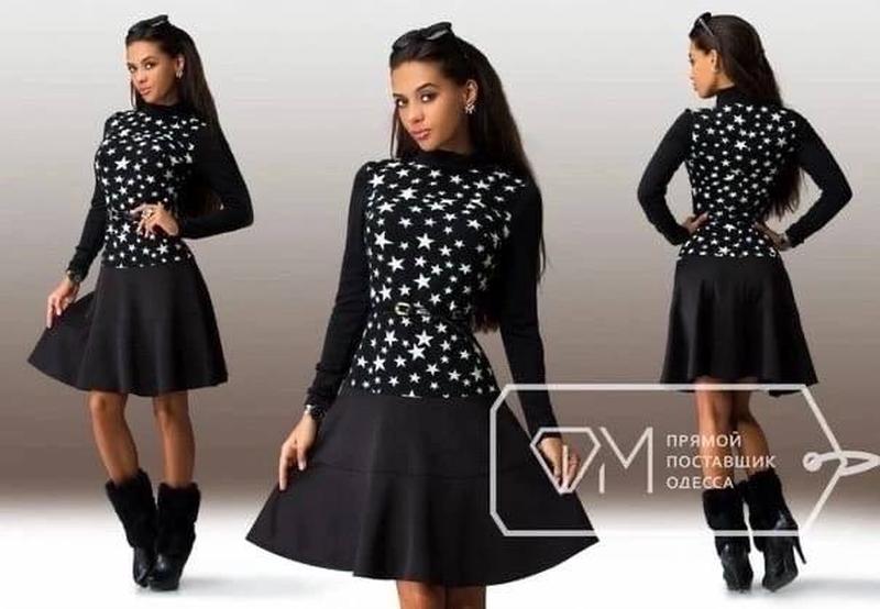 Модель 529 платье Размеры : 42;44;46 чёрный + чёрная юбка 46;48 жёлтый + чёрная юбка 46;48 чёрный + молоко юбка Ткань :французский трикотаж, ангора, дайвинг , поясок в комплекте, вдоль спинки потайная молния. Длина: 92 см.