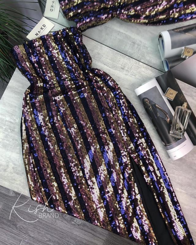 Яскрава вечірня сукня міді бандо в паєтки м / яркое вечернее платье миди в пайетки m na-kd