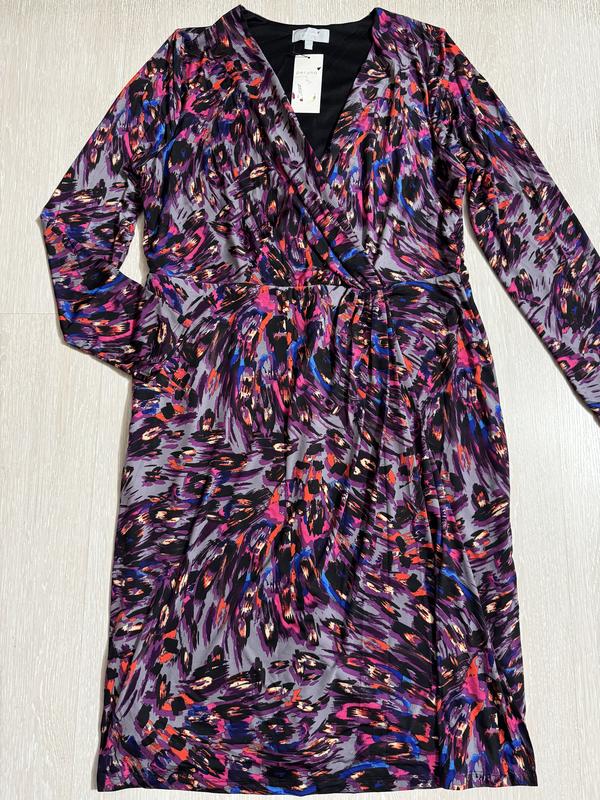 В наличии красивое платье фирмы M&S. Размер указан 16. Состав: 94% полиестер и 6% эластана...ткань мягенькая и приятная к телу, хорошо тянется. ПОГ-56...тянется до 65, длина платья-104, плечи-39, длина рукава-61, полуобъём в талии (резинка)- 45...тянется до 51, полуобъём в бёдрах-55+ещё хорошо тянется.
