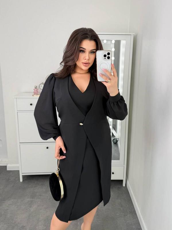 Платье Арт 2246 Ткань креп костюмный, шифон Цвет черный Размер 48-50,52-54,56-58 Цена 880 грн Шикарное платье, которое скроет любой недостаток. Спереди на талии пуговица на петле. Сзади потайная молния.