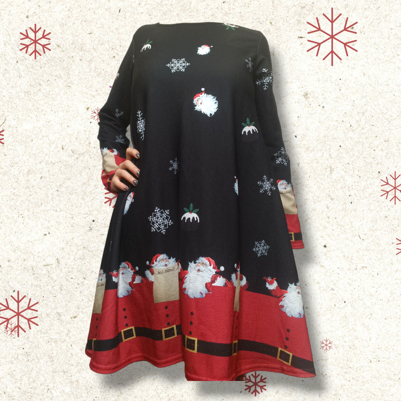 Новогоднее рождественское платье платье с принтом санта клаус и снежинки