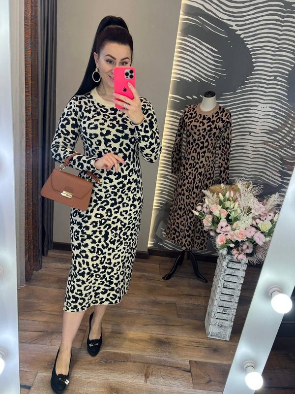 шикарное платье миди облегающего кроя слегка расклешенное от талии, круглым вырезом на груди и длинными рукавами отлично подчеркнет красоту вашей фигуры, она одинаково будет смотреться на вас на работе, в офисе или вечеринке с близкими друзьями платье выполнено из теплого и приятного на ощупь трикотажа машинной вязки с модным принтом размер единственный 42-44 длина 118 см, объем груди по изделию 88-89 см, длина рукава от шеи 68 см код 0625 цена 1350грн