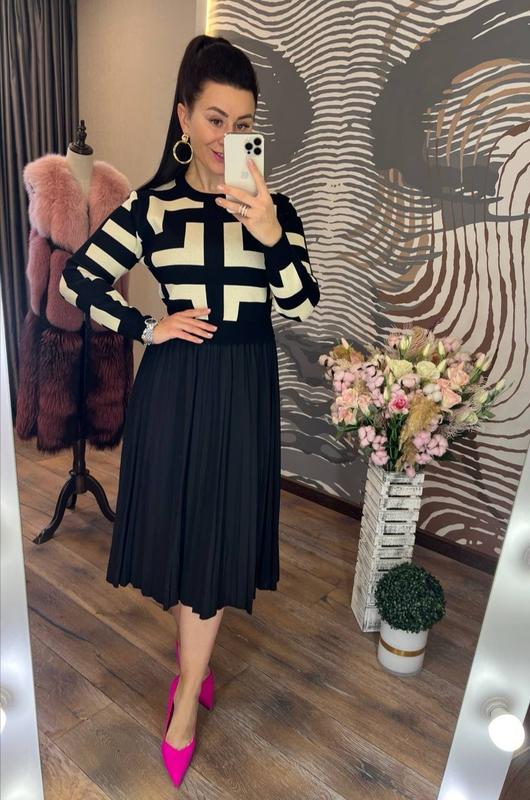 фантастически красивое платье настоящий шедевр высокой моды не оставит равнодушной ни одну ценительницу красивой одежды, в ней вы привлечете взгляды окружающих, подчеркнете красоту фигуры и будете выглядеть потрясающе, платье выполнено из ансамбля двух тканей высокого качества, в верхней части трикотаж машинной вязки с великолепным рисунком, в нижней - шикарная юбка, на резинке вверху, из гофрированного креп-шифона размеры: М-размер 44/46 длина 118-120 см, пг 44-46 см длина рукава от шеи 66-68 см Л-46/48 длина 118-120 см, пг 46-48 см, длина рукава от шеи 66-68 см ХЛ-48/50 длина 120-122 см, пг 48-50 см, длина рукава от шеи 68-70 см код 0636 цена 1700 грн