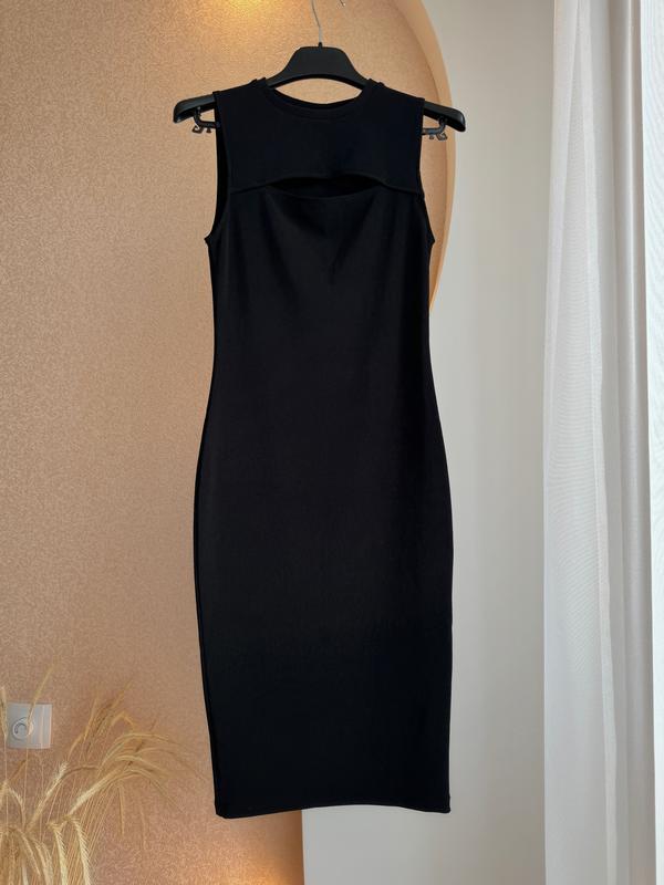 Чорна трикотажна міді-сукня з оригінальним вирізом на декольте — універсальний вибір для будь-якого випадку. Горизонтальний виріз елегантно підкреслює фігуру, створюючи гармонійний силует. Матеріал приємний до тіла та еластичний, тому забезпечує ідеальну посадку. Сукня легко доповнить повсякденний гардероб і стане чудовою основою для створення ділових або елегантних образів. Універсальний фасон дозволяє адаптувати її під будь-яку нагоду. Довжина: міді (нижче коліна) - 104 см. Матеріал дуже еластичний і добре тягнеться. Півобхват грудей - 36 см. Півобхват талії - 33 см. Півобхват стегон - 39 см.