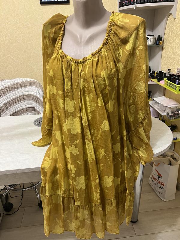Платье шифон. Горчич неового цвета. Размер Over says. Свободного кроя, легкое приятное к телу. Рукав 3 четверти