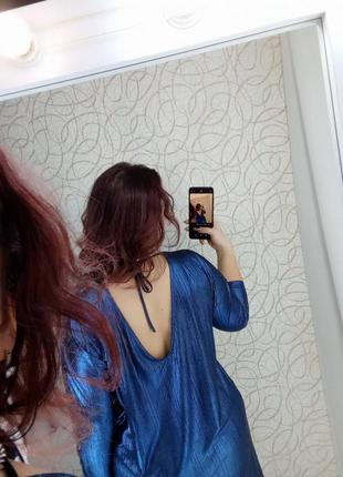 Платье насыщенного синего цвета с переливом ✔ Довжина: 81 см, обхват: 110 см. ✔ Три четверти рукав для элегантного вида. ✔ Завязка на спинке добавляет особого шарма. ✔ Материал с легким переливом – для утонченного образа. Отличный выбор для праздничных событий или романтических вечеров! При необходимости могу сделать дополнительные фото или видео.